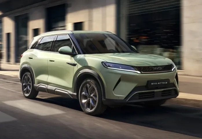 BYD ATTO 2 je navržen podle rodinného designového jazyka "dračí tváře", který vytvořil Wolfgang Egger, ředitel globálního designu společnosti BYD. Krátké převisy a dynamické křivky na povrchu karoserie mu dodávají sportovní vzhled, zatímco robustní exteriér podtrhuje sílu a odolnost vozu.